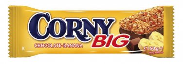 z kategorie Čokoládové tyčinkyCereálna tyčinka banánová v mliečnej čokoláde. Bola jedna z prvých a dodnes je najobľúbenejší. Kombinácia chutných kúskov banánov, poctivé mliečnej čokolády a müsli. Corny Big je správna porcia chuti a energie pre váš aktívny život.