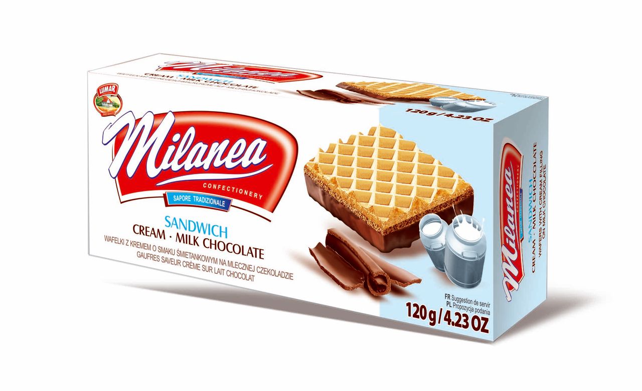 Milanea sandwich with cream fill on milk chocolate 120g 15ks